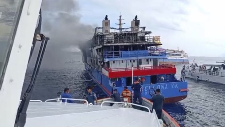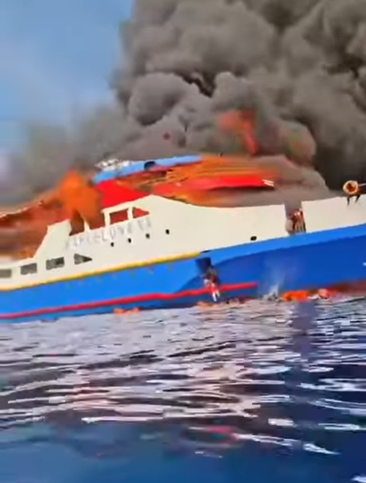 Eyewitness footage shared on social media showed the vessel partially engulfed in flames, with rescue ships spraying water onto the burning hull as terrified passengers huddled together on deck.