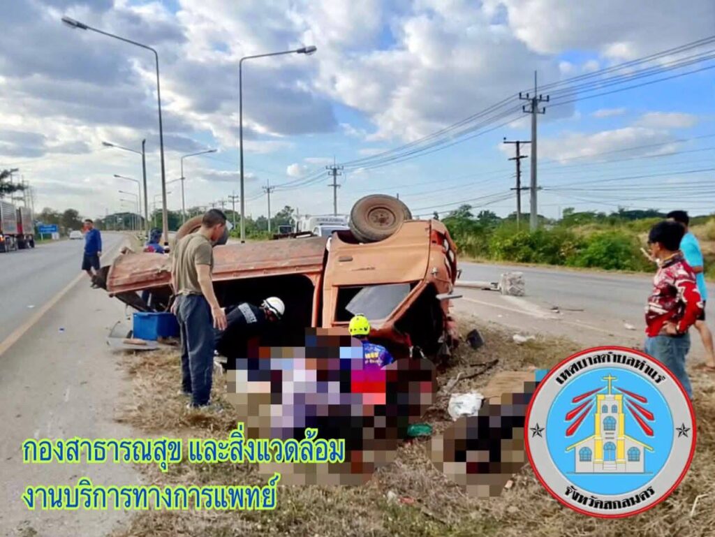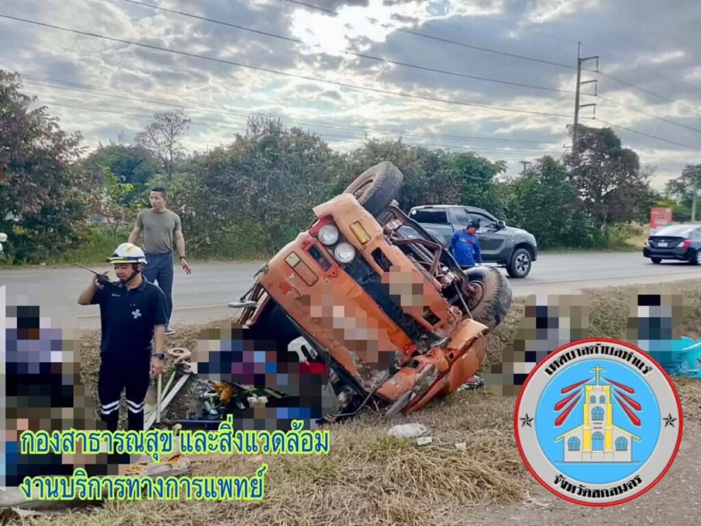 รายแรกชาย 🔴 กู้ชีพเทศบาลตำบลเชียงเครือ เร่งให้การช่วยเหลือ ปฐมพยาบาลเบื้องต้น ณ จุดเกิดเหตุ ทำการเคลื่อนย้าย นำส่งเปลี่ยนถ่ายกับชุด EMS โรงพยาบาลศูนย์สกลนคร รายที่สองชาย 🔴 กู้ภัยชุดอุทิศ สกลนคร เร่งให้การช่วยเหลือ ปฐมพยาบาลเบื้องต้น ณ จุดเกิดเหตุ ทำการเคลื่อนย้าย นำส่งเปลี่ยนถ่ายกับชุด EMS โรงพยาบาลศูนย์สกลนคร ชาย 🟡 3 ราย ปฐมพยาบาลเบื้องต้น ณ จุดเกิดเหตุ ทำการเคลื่อนย้าย นำส่งโรงพยาบาลศูนย์สกลนคร เพื่อทำการรักษาต่อไป และชาย ⚫️ 2 ราย อาการสาหัส ไม่มีชีพจร เร่งให้การช่วยเหลือ ปฐมพยาบาลเบื้องต้น ณ จุดเกิดเหตุ และยืนยันผู้ได้รับบาดเจ็บเสียชีวิต ณ จุดเกิดเหตุ ประสานแพทย์เวร โรงพยาบาลศูนย์สกลนคร เจ้าหน้าที่ตำรวจ สถานีตำรวจชุมชนเชียงเครือ ร้อยเวรสอบสวน สถานีตำรวจภูธรขมิ้น ร่วมชันสูตรพลิกศพเรียบร้อยแล้ว ทำการเคลื่อนย้ายผู้เสีeชีวิต กู้ภัยร่วมใจฮางโฮง กู้ภัยคำหอม บริการนำร่างผู้เสีeชีวิตส่งเก็บรักษาที่โรงพยาบาลศูนย์สกลนคร เพื่อให้ญาติมาติดต่อรับผู้เสีeชีวิตไปประกอบพิธีกรรมทางศาสนาต่อไป ชุดวายุ เทศบาลตำบลท่าแร่ กู้ภัยมิตรภาพรวมใจ สกลนคร วายุ 12 ปักษา 05 เจ้าหน้าที่ตำรวจ สถานีตำรวจชุมชนเชียงเครือ อำนวยความสะดวกด้านการจราจรเพื่อป้องกันเหตุซ้ำซ้อนครับ