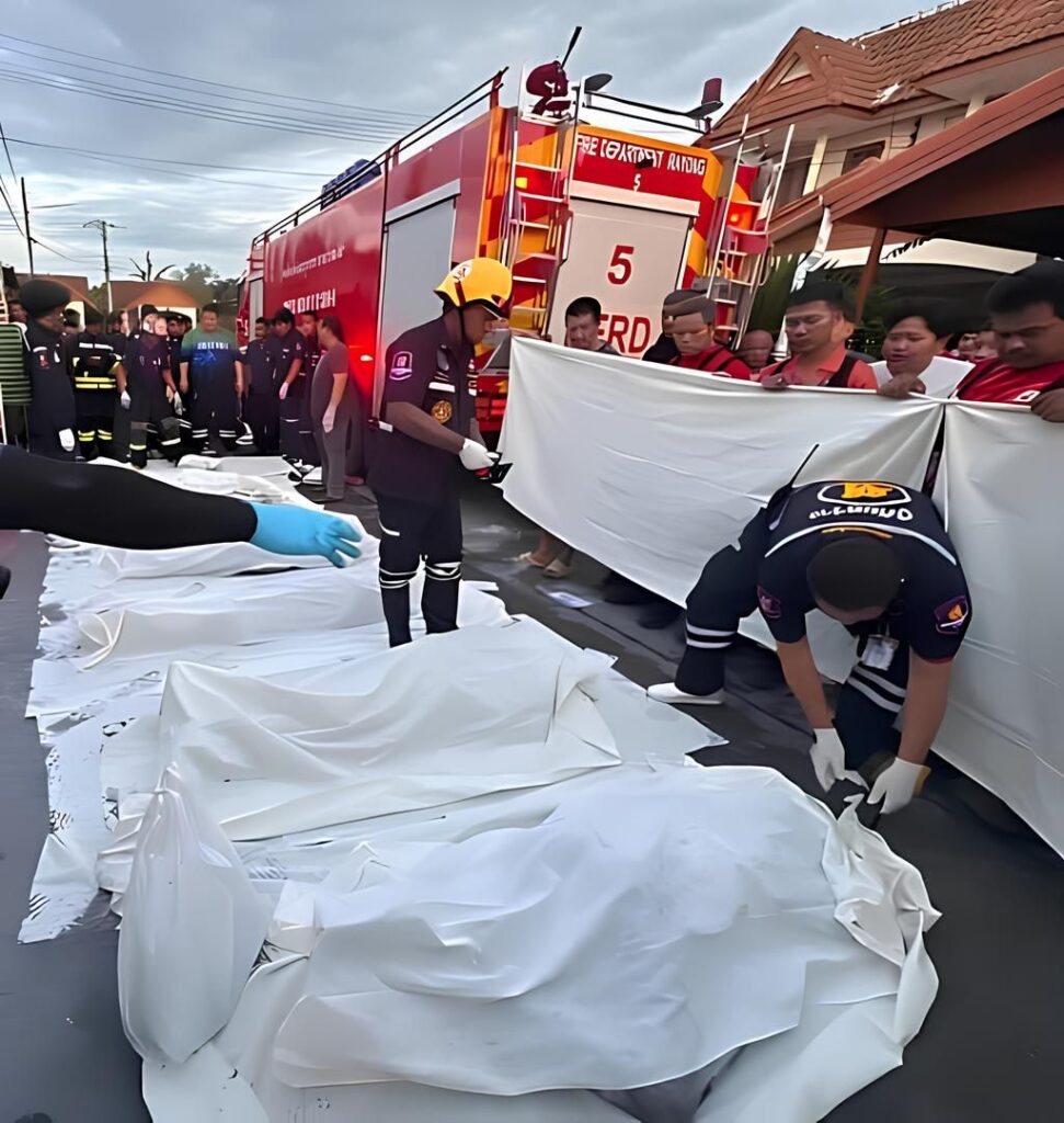 นื่องจากถูกควันและไฟปิดล้อมทั้งหมด ส่งผลให้เสียชีวิตรวม 7 รายในครั้งนี้ หลังเพลิงสงบ เจ้าหน้าที่พิสูจน์หลักฐานและทีมแพทย์นิติเวชเข้าตรวจสอบพื้นที่