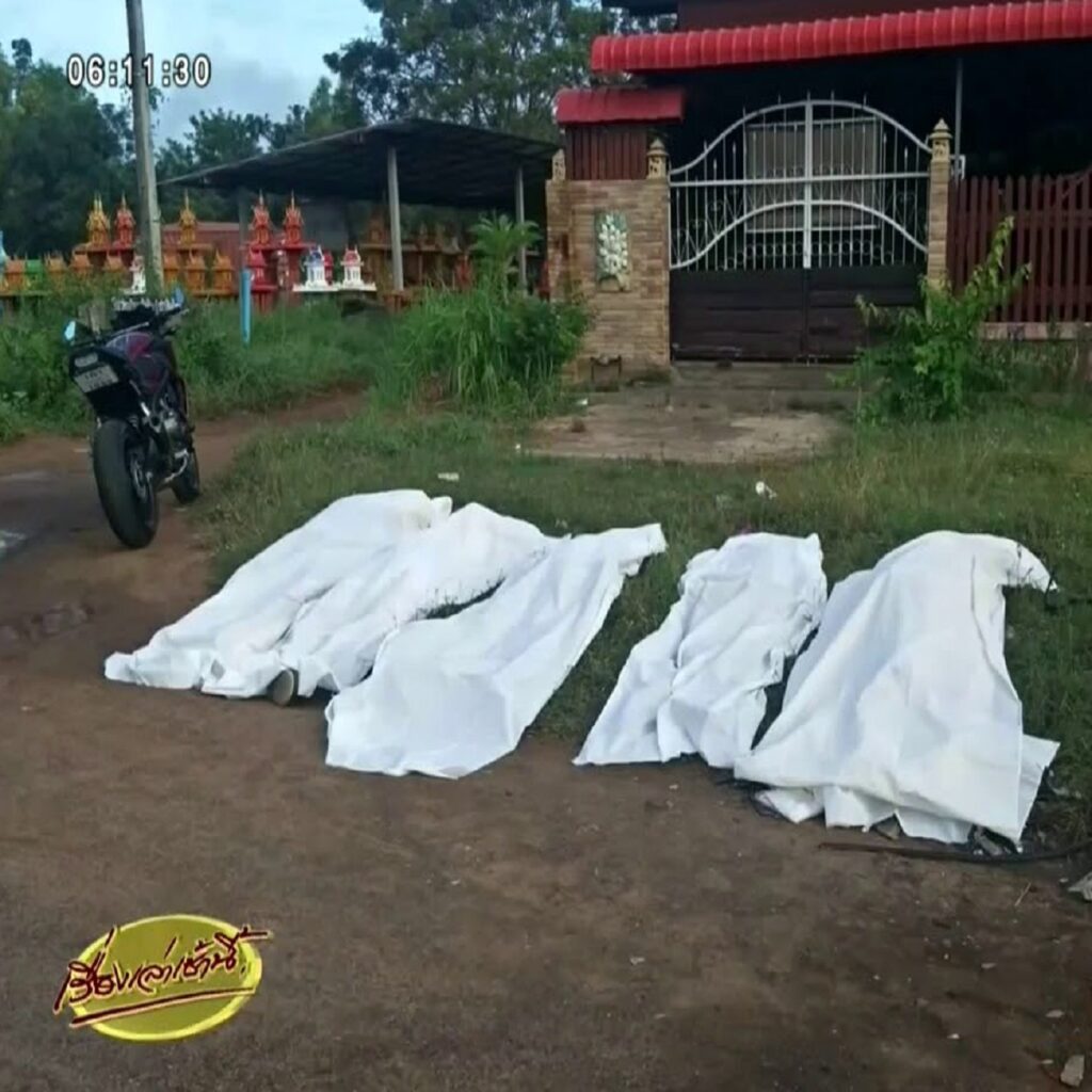 ส่วนศพของผู้เสียชีวิตทั้ง 5 รายนั้น บรรดาญาติพี่น้องได้มารับศพออกไปแล้วตั้งแต่เมื่อช่วงเวลาประมาณ 15.00 น.ที่ผ่านมา ท่ามกลางบรรยากาศที่เศร้าสลด โดยศพของนักศึกษาแพทย์ ได้มีคุณพ่อ ซึ่งเป็นนายแพทย์อยู่ที่ จ.อุบลราชธานี รับศพออกไปเพื่อบำเพ็ญกุศลที่ จ.อุบลราชธานี ส่วนอีก 4 ศพ ที่เป็นของคณะครูนั้น ญาติได้นำศพไปประกอบพิธีทางศาสนาที่ อ.สนม จ.สุรินทร์ ซึ่งได้รายงานเหตุการณ์ทั้งหมดให้ ผกก.สภ.กันทรารมย์ ได้รับทราบแล้ว ร.ต.อ.ทวีศักดิ์ กล่าวในตอนท้าย